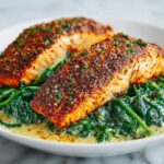 This Blackened Salmon Stuffed with Spinach & Parmesan is a flavorful and elegant dish that combines tender salmon fillets with a creamy spinach and cheese filling. The salmon is seared to achieve a perfectly blackened crust and then baked to juicy, flaky perfection. It makes for a quick and impressive meal ready in just 30 minutes, featuring a balance of rich, savory flavors and a healthy dose of greens.