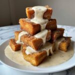 Remove the bites from the skillet and drizzle the icing from the cinnamon rolls over the top while they’re still warm. For an extra special touch, add a drizzle of maple syrup or a dusting of powdered sugar. These finishing touches elevate these Cinnamon Roll French Toast Bites Recipe into something truly spectacular.