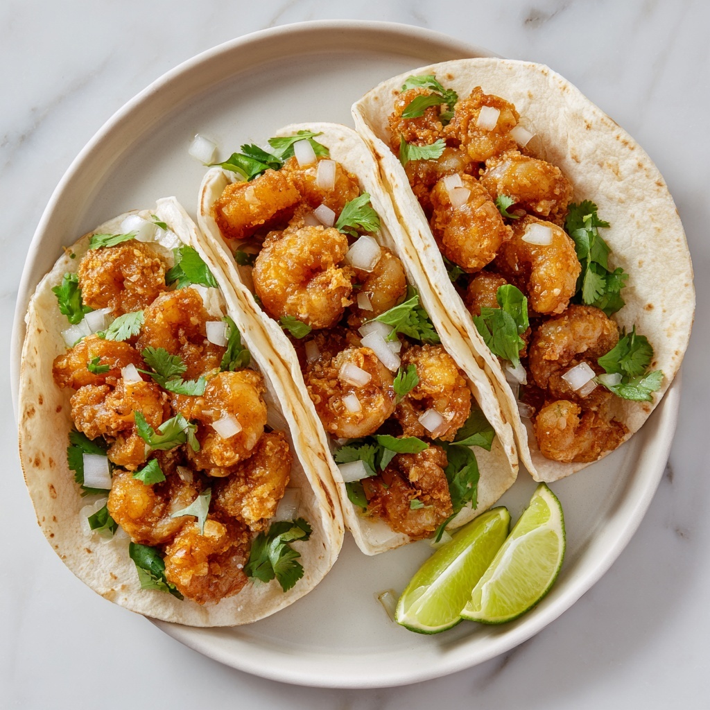Pair these tacos with a refreshing mango salsa or a simple avocado salad to complement the crunchy, spicy shrimp with juicy and creamy sides. Light coconut rice or black beans can also round out the meal, making it more filling while keeping the tropical vibe intact.