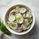 Start by thinly slicing your cucumbers and red onions. The thin slices will give you that delicate crunch and help the flavors meld beautifully with the dressing. It’s best to use a sharp knife or a mandoline for even, paper-thin slices that look as good as they taste.
