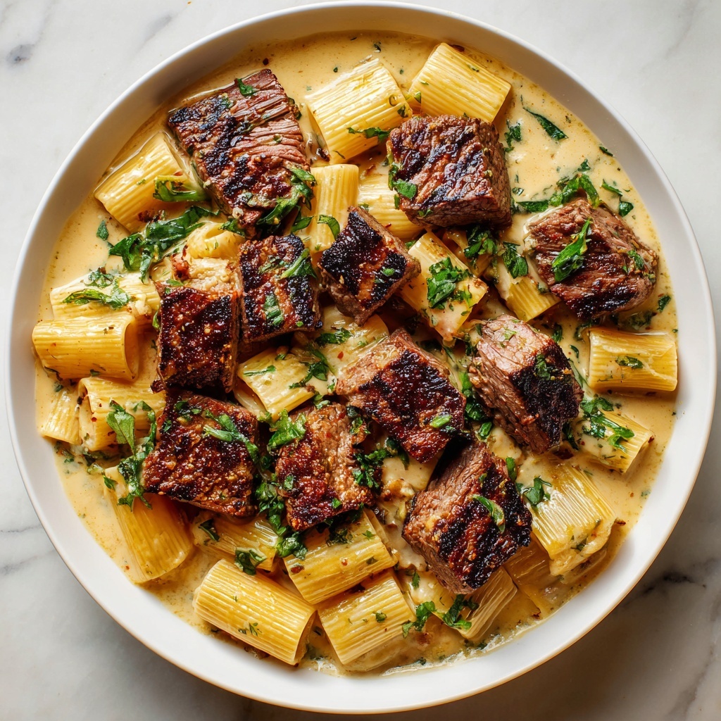 For a stunning presentation, twirl portions of pasta into small nests on each plate, topping with slices of steak arranged artfully alongside. Garnish with parsley sprigs and perhaps a drizzle of good-quality olive oil or a sprinkle of crushed red pepper flakes for a touch of heat. Serving in deep bowls keeps the creamy sauce contained and makes each bite comforting and cozy.