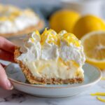 When you’re ready to serve, lavish the top of your pie with fluffy whipped cream and arrange fresh lemon slices artistically. This not only adds a refreshing bite but also makes for a beautiful, inviting presentation.