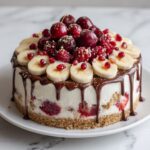 This No-Bake Banana Split Cake is a deliciously creamy and fruity dessert featuring a graham cracker crust, layers of ripe bananas, crushed pineapple, and a fluffy cream cheese and whipped cream filling. Topped with mini chocolate chips, optional maraschino cherries, and whipped cream, this easy-to-make cake requires no baking and is perfect for quick, crowd-pleasing treats.