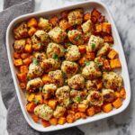 Finishing off your One-Pan Chicken and Sweet Potato Skillet Recipe with a sprinkle of freshly chopped parsley adds a refreshing herbal brightness and a lovely pop of green that elevates the dish visually and taste-wise. A light dusting of extra red pepper flakes can also excite those who crave a touch more heat.