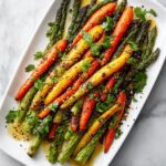 Enjoy perfectly roasted asparagus and carrots with a crispy, golden finish. This simple vegetable side dish combines fresh asparagus and carrots tossed in olive oil and seasoned with garlic powder, thyme, salt, and pepper, then roasted to tender perfection for a healthy and flavorful addition to any meal.