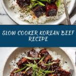 - Garnish and Serve: Once cooked, sprinkle with the reserved scallion greens and black and white sesame seeds. Drizzle with extra gochujang or Korean BBQ sauce to taste before serving. Enjoy this delicious Korean-inspired slow cooker beef over steamed rice or your favorite side dishes.