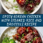 Spicy Korean Chicken with Steamed Rice and Broccoli Recipe