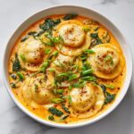 This Thai Red Curry Dumpling Soup is a vibrant and comforting dish that combines fragrant Thai red curry with tender dumplings in a creamy coconut broth. Ready in just 30 minutes, it’s perfect for a flavorful weeknight meal that’s hearty yet easy to prepare. The soup is enhanced with fresh herbs, lime juice, and optional spicy toppings, creating a delicious balance of spicy, savory, and fresh flavors.