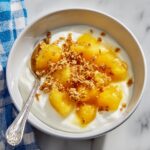 - Finish with granola and serve: Sprinkle 2 tablespoons of gluten-free granola over the top for added crunch and texture. Serve immediately to enjoy the delightful contrast of warm peaches and creamy yogurt.